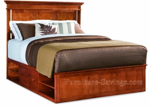 Information about this collection: Sterling Pointe is a collection of bedroom furniture with simple lines but spectacular possibilities. Sterling Pointe is a versatile group that can easily capture any lifestyle and work in any setting. The collection can go from urban chic to country cottage from transitional to coastal and all personal styles in between! Sterling Pointe is offered in four popular colors; Black White Cherry and Maple. Crafted of Maple and Hardwood Solids Maple and Hardwood Veneers. All Case pieces come with matching color hardware and polished chrome finish hardware for even more personalization. Sterling Pointe has a timeless appeal that can adapt and last a lifetime. Sterling Pointe will capture the essence of you personal style. Features: Mirrors are beveled Door Chest has 2 wraparound doors 1 adjustable shelf 1 fixed shelf 2 tray drawers 2 drawers at base TV Opening:W37 1/2-D18-H29 Underbed Storage works only with panel and slat headboards only Transitional Design Crafted from only hardwoods solids Maple and hardwood veneers Satin Finish Dovetail Construction on all Drawers Ball Bearing Glides with Fully Extendable drawers Polished Silver Color hardware document.write(new_number); For additional pictures of this collection please click here. Sterling Pointe-Cherry Queen Panel Platform Storage Bed Does Not Require Boxspring Free Delivery applies to orders over 9